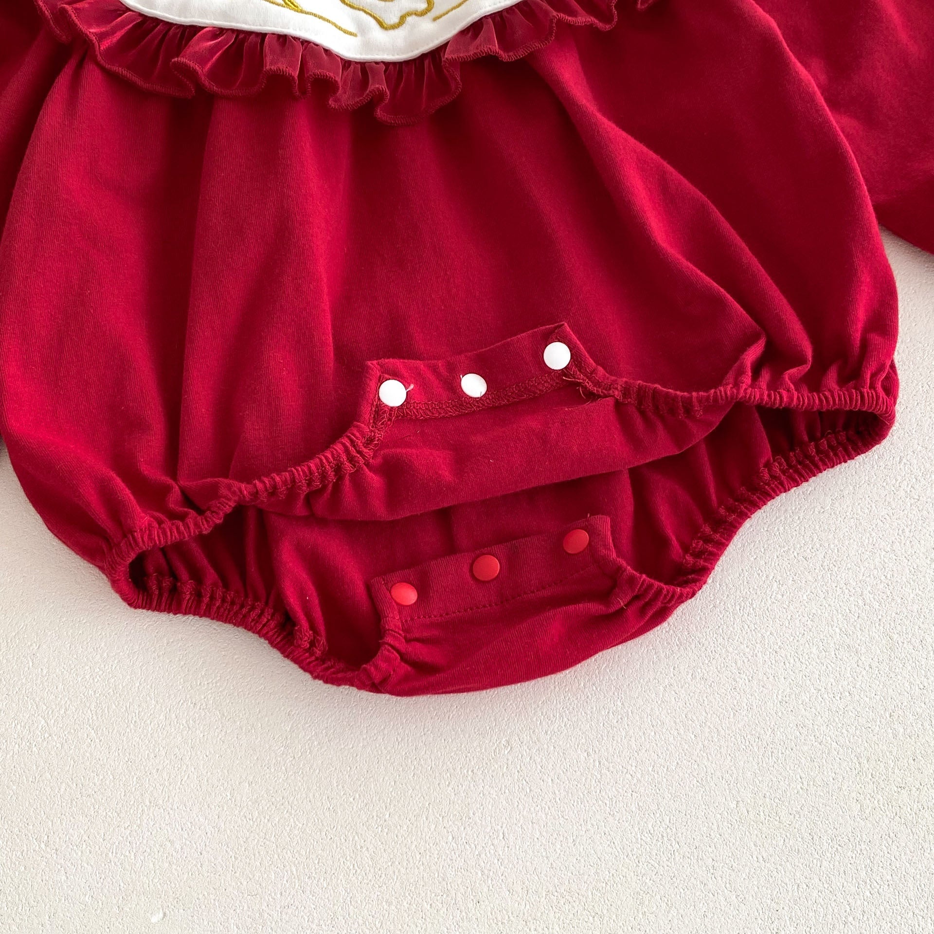 Dress your little one in cozy charm with this Autumn Arrival baby girl onesie. Featuring long sleeves and a cute rabbit embroidery on the collar, its vibrant red color adds a playful touch to any fall outfit. Soft and comfortable, it keeps your baby warm while looking adorable during those crisp autumn days.
