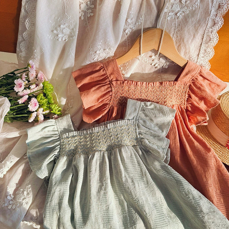 This elegant summer dress for baby girls features delicate fly sleeves and a solid, timeless color. Crafted for comfort and style, it offers a refined look perfect for warm days and special occasions alike. Its simple design ensures versatility while maintaining a sophisticated charm.